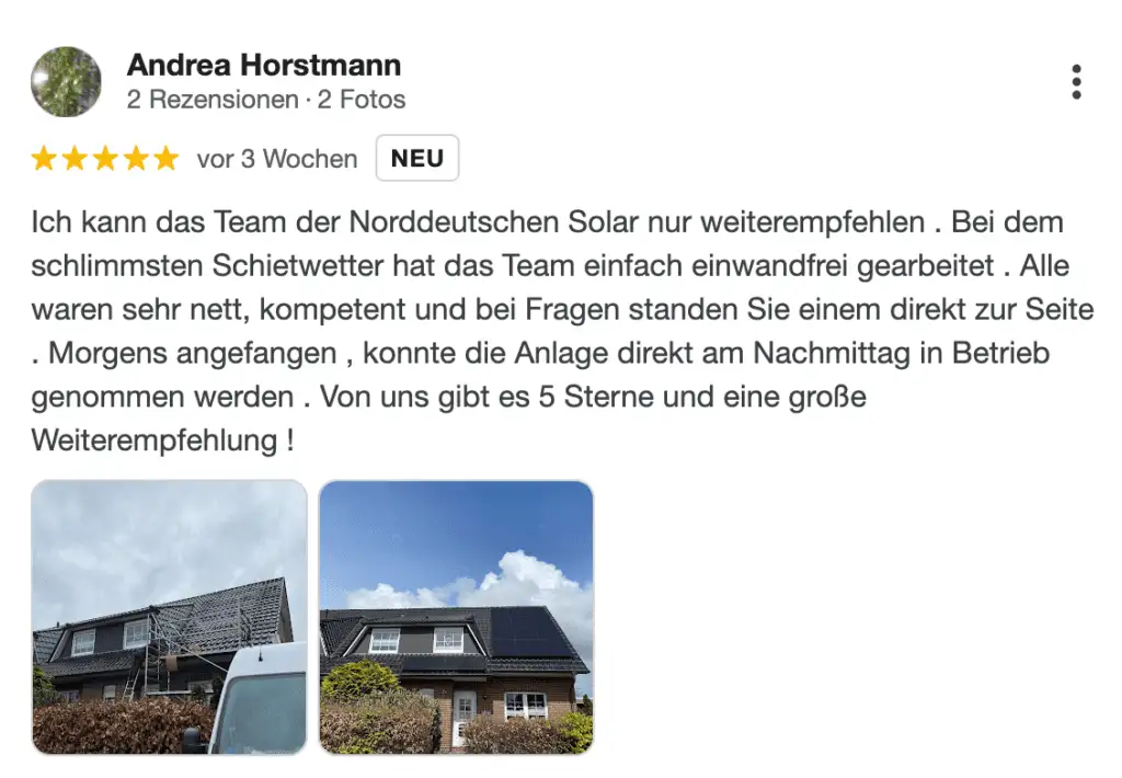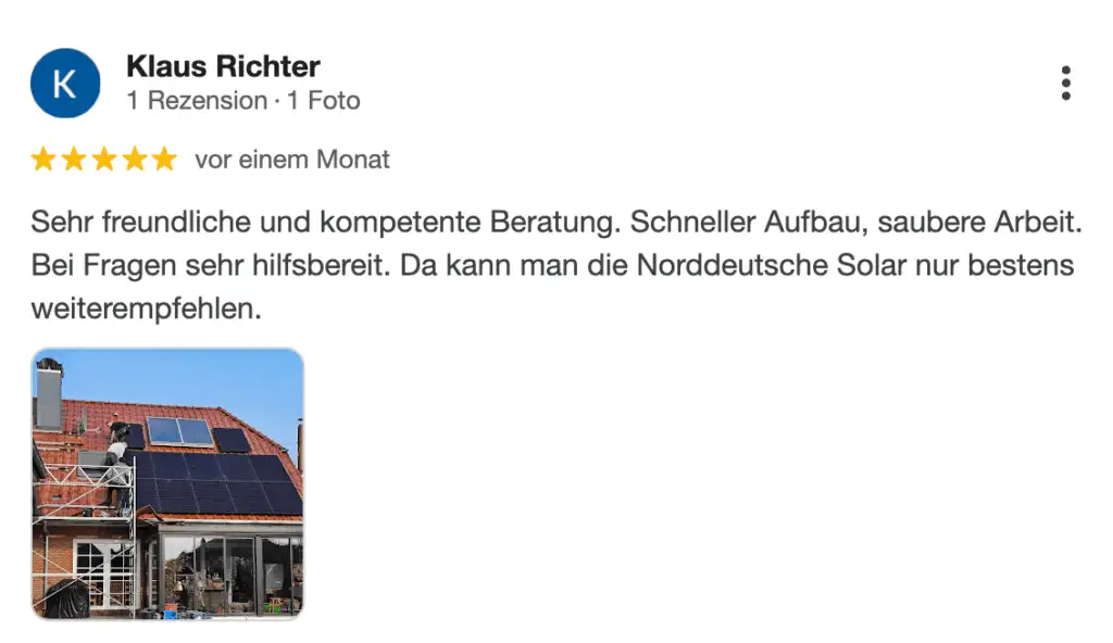 Unsere Solaranlagen sind speziell für die klimatischen Bedingungen in Norddeutschland konzipiert. Mit unserer lokalen Expertise und Erfahrung garantieren wir optimale Leistung und Zuverlässigkeit unter norddeutschen Wetterbedingungen. Unser Feinabstimmungen für die Besonderheiten des nordischen Wetters können bis zu 30% mehr Ertrag erwirken.