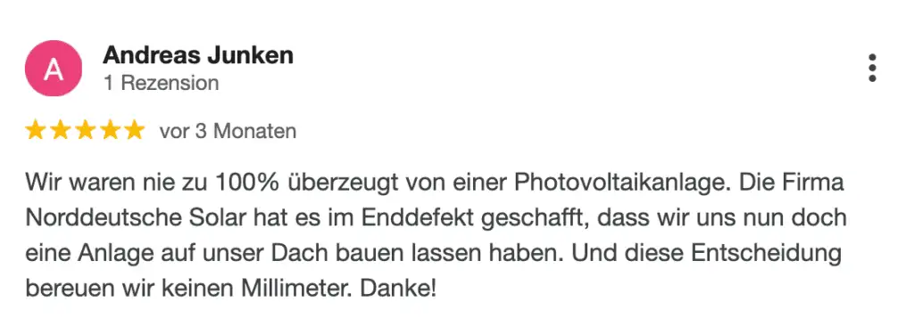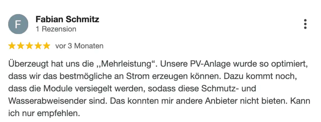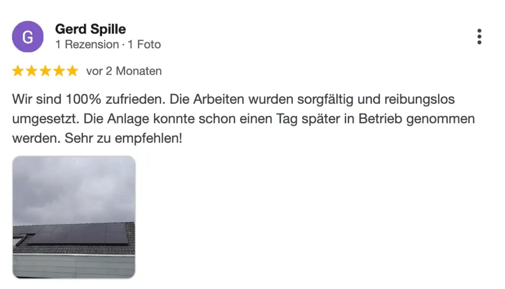 Dein Vorteil: Echte Ingenieurqualität zum günstigsten Preis. Durch unsere Großprojekte profitierst du als Privatkunde. Deine neue Solaranlage ist in Rekordzeit montiert und angemeldet und das alles ohne Anzahlung.
