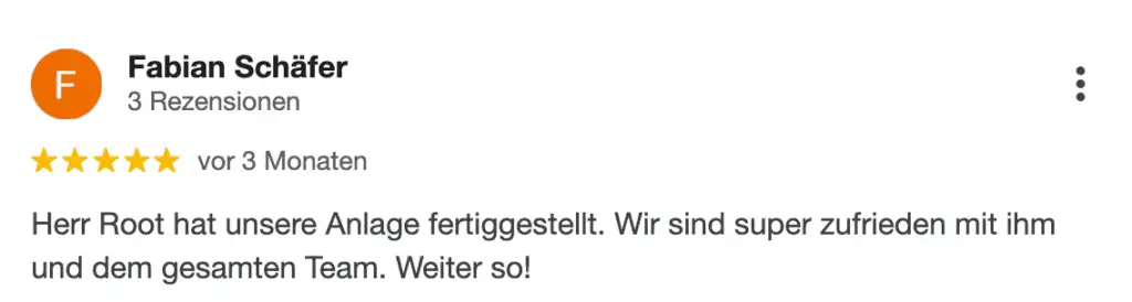 Wir planen und bauen jede Anlage als wäre es unsere eigene. Unser Ziel ist sehr einfach: Wir wollen dich so glücklich machen, dass wir von dir weiterempfohlen werden. Genauso wie von den folgenden Kundinnen und Kunden: